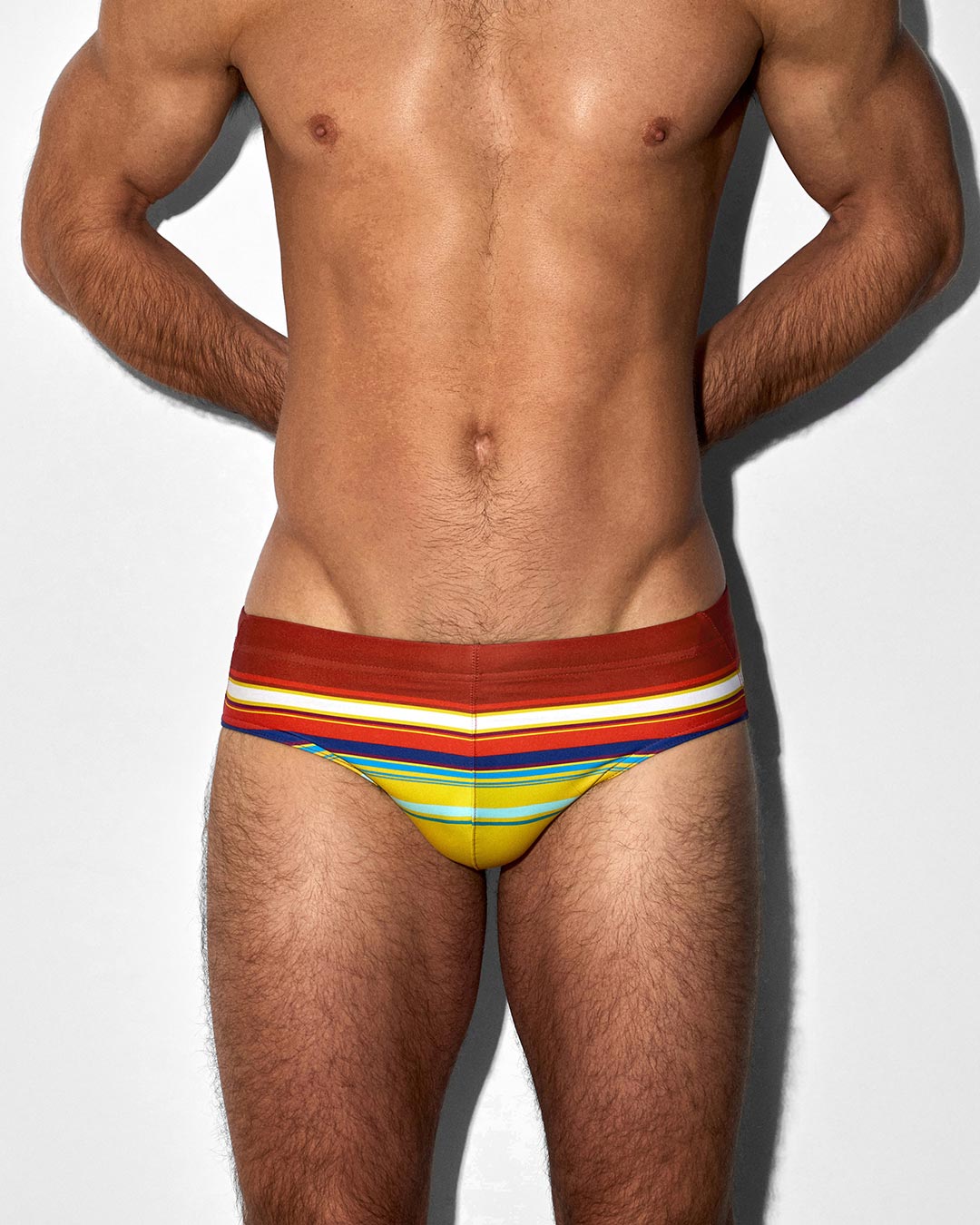 Swim Brief Red Yellow Horizontal Stripes