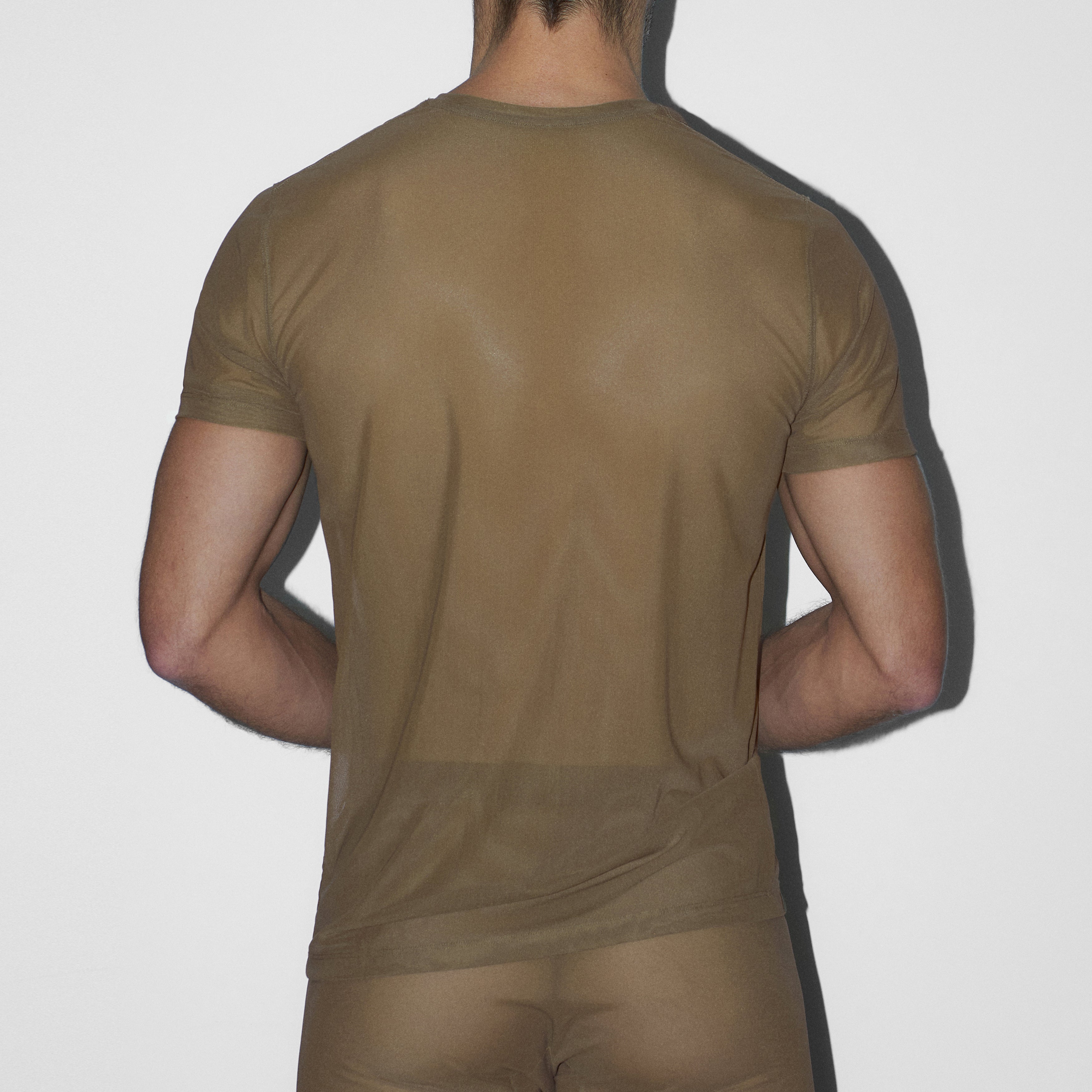 Sheer Crew Neck T-Shirt Dark Nude